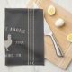 Mit diesem niedlichen personalisierten Küchentuch mit Familienname oder Bauernname, feststehendem Jahr und weicher, gelber Schrift mit einer Hahnenillustrierung auf kohlegrauem Hintergrund feiern Sie das Leben auf dem Bauernhof.