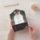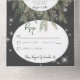 AUCH MIT EINEM QR CODE ZUM SCAN ODER MIT ABENDESY-OPTIONEN. Dieses Design besticht durch eine rustikale grüne Kiefer und einen Pinecone-Bouquet auf einem weichen Hintergrund aus Holzkohle mit weißen Blume. Es wird durch ein weißes, glänzendes Overlay hervorgehoben, um den Zauber der schönen Winterferien zu veranschaulichen. Ideal für eine Weihnachts- oder Winterhochzeit. Personalisierte All-In-One-Einladungen sind eine einzigartige Kombination aus einer schön gedruckten, maßgeschneiderten Einladung und einer leicht zu abreißenden perforierten UAWG-Postkarte. Und sie sind so einfach zu bedienen! Man falte einfach, dann Siegel die Rückklappe mit den drei beiliegenden Klarkleben, und Post. Und wenn Ihre Gäste Ihre persönliche Einladung erhalten, reißen sie einfach die perforierte RSVP Karte ab und lassen sie in der Mail an Sie zurück!