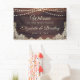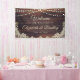 Willkommen bei einer Hochzeit (oder anderen Hochzeitsveranstaltungen wie Empfang, Brautparty, Duschkabine, etc. da alles bearbeitet werden kann) mit diesem Banner mit rustikalem Holz, Saitenleuchten und Spitzen in Elfenbein, cremefarben oder cremefarben für ein Land, Scheune, Vintage Hochzeit oder Hochzeit im Freien. Wenden Sie sich an den Designer über den Zazzle Chat oder makeitaboutyoustore@gmail.com , wenn Sie dieses Design modifizieren möchten, an einem anderen Produkt oder an einem koordinierenden Artikel.