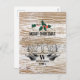 Ein rustikaler Holztexturhintergrund mit Weihnachtsbeeren, Monogramm zwischen Hirschgeweih und Name unter Vintager Hirschillustrierung. Ein Wald und ein Waldland fühlen sich mit rustikalem Charme. Passen Sie den Text an und machen Sie ihn zu Ihrem eigenen.