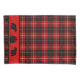 Rustikale Hütte im Holzdesign mit einem roten, schwarzen und cremefarbenen kariert. Der dicke rote Streifen mit schwarzen Silhouetten von Bäumen, Bären und Pfotenspuren. Das Rot ist wechselbar! Tauschen Sie das Rot für jede Farbe aus, die Sie bevorzugen.