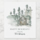 Personalisierte Rustikale Hütte Watercolor Forest Green Holiday Weinetikett