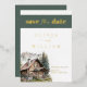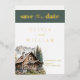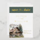 Diese Save the Date Karte bietet eine wunderschöne Aquarelllandschaft mit einer rustikalen Hütte, Bergen, Natur und Bäumen, mit moderner Kalligraphie Typografie in REAL GOLD FOIL. Karo in unseren Hochzeitskollektionen, um die passenden Produkte zu finden, um Ihren besonderen Tag noch schöner zu gestalten, und beeindrucken Sie Ihre Gäste mit diesem schönen Design.