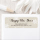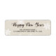 Glückliche Neujahrsfest-Rücksendeadressen-Aufkleber mit Schneeflocken-Muster und Imitaten begraben Leinwand Textur Hintergrund. Matching-Elemente sind ebenfalls verfügbar.