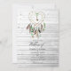 Die einheimische Einladung zur Hochzeit eines amerikanischen Stammes mit einem Traumfänger mit Federn und blendenden smaragdgrünen Edelsteinen. Der Text der GÄSTEDETAILS auf der Rückseite ist optional. Wenn Sie es lieber entfernen möchten, scrollen Sie unten in "Personalisieren Sie diese Vorlage" und klicken Sie auf "Bearbeiten mit dem Entwurfswerkzeug". Im Entwurfswerkzeug können Sie Text- oder Designelemente bearbeiten, skalieren, löschen oder verschieben, die Sie wünschen.