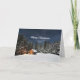 Rustikale Winterhütte am Abend in einer schneebedeckten Landschaft.