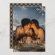 Dieses romantische Foto Save the Date mit fallendem Schnee, schneesicheren Schneeflocken und einem khaki büffalo karierten Muster ist leicht zu personalisieren. DIESE KARTE FUNKTIONIERT AM BESTEN MIT DUNKEN FOTOS.