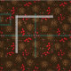 Rustikal dunkelbraune Stoffe mit einem Waldmuster aus Tannenbäumen und roten Heiligbeeren