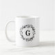 Moderne Kaffeemaschine-Tasse personalisiert mit dem Monogramm in einem rustikalen Kranrahmen. Anpassen Sie es, um Ihren eigenen Text hinzuzufügen und ein einzigartiges Geschenk für frisch vermählte oder häusliche Erwärmung zu schaffen.