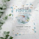 Die Babydusche "Sweet Small Kürbis" mit einem einfachen, weißen Hintergrund, einem niedlichen, blauen Kürbis, Schmetterlingen, Blumen, Eukalyptus, goldenen und blauen Sternen und einer modernen Babydusche, die leicht zu gestalten ist.