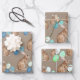 Ein heftiges luxuriöses Verpackungspapier in einem kraftpapierfarbenen Hintergrund mit Aquarell lackierten Hasen, die ihre bunte Ostereierjagd teilen.