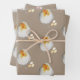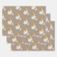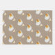 Ein heftiges luxuriöses Verpackungspapier in einem kraftpapierfarbenen Hintergrund mit Aquarellbändern gemalt Hasen, die ihre bunten Ostereierfunde zeigen.