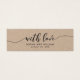 Diese rustikale Mini-Kraftkarte mit den Worten "mit Liebe" in dunkelgrauem Relax-Skript macht eine großartige Gastgeschenk Hochzeit Anhänger. Es ist einfach zu personalisieren; ersetzen Sie einfach den Platzhalter-Text, um Ihre eigenen Informationen hinzuzufügen. Für weitere Optionen, wie zum Beispiel den Schriftart, die Textgröße oder den Abstand zwischen den Buchstaben zu ändern, klicken Sie auf die Schaltfläche "Anpassen". *Bitte beachten Sie, dass das Zazzle-Wasserzeichen, das in der Zoomvorschau angezeigt wird, NICHT auf dem gedruckten Endprodukt erscheint. © Rosewood and Citrus