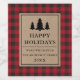 Rustikales Kraft Red Buffalo Kariert Happy Holidays Weinetikett enthält Kiefernwälder Silhouetten.