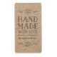 Stilvolle rustikale Aufschrift mit dem Aufdruck "Handmade with Liebe" zwischen Schnörkeln, alle in dunkelgrau und kraftstoffartiger Muster-Hintergrund. Dieses handgefertigte Label ist ideal für Handwerker und Handwerker, wie Künstler, Stricker, Schreiner. Personalisieren Sie es, indem Sie den Platzhalter-Text ersetzen. Für weitere Optionen, wie zum Beispiel den Schriftart zu ändern und seine Größe, Farbe oder den Abstand zwischen den Buchstaben, klicken Sie auf die Schaltfläche "Anpassen". *Bitte beachten Sie, dass das Zazzle-Wasserzeichen in der Zoomvorschau NICHT auf dem gedruckten Endprodukt © Rosewood and Citrus erscheint