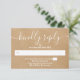 Eine einfache, elegante Signatur-Script-RSVP-Karte mit Ihrem Detail-Set in schicke Typografie auf einem rustikalen Kraftsackhintergrund, Saitenleuchten und Maurerkrübel auf der Rückseite. Entwickelt von Thisisnotme©