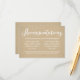 Rustikale Kraft White Script Hochzeitsunterkünfte Begleitkarte
