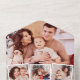 Das modische und festliche Multi-Foto-Design mit drei kleinen und einer großen Vorlage, dekorative weiße Kalligrafieschrift "Happy Holidays" und bearbeitbarem Textfeld auf warmen rustikalen Leinentexturhintergrund. Die Panels verfügen über ergänzende Skripte, Leinenhintergrund, Bildvorlagen, zusätzliche Textfelder und ein einzigartiges, wegreißendes Foto.