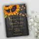 Elegantes, schicke Sommer- oder Herbstvorratsvorlage auf dunkelbraunem Stallholz mit einem schönen Sonnenblumenstrauß und Streichern oder bunten Lichtern. Füllen Sie Ihre Informationen in den Flecken, Sie können wählen, um es anzupassen, weitere sich ändernde Schriftartes und Farben der Schrift. — Die Einladung ist geeignet für elegante Sommer- oder Herbsthochzeiten rustikale Landschaften. — Wenn Sie Hilfe bei der Anpassung benötigen, kontaktieren Sie mich bitte!