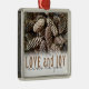 Rustikale Liebe und Joy Pine Cone Silbernes Ornament