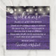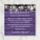 Dieses elegante rustikale Gustenschild mit hübschen Saitenleuchten und charakteristischen Stilnamen auf einem lila Holzpaneelenboden kann mit Ihren besonderen Dankeschön-Informationen in schicker Schrift personalisiert werden. Entwickelt von Thisisnotme©