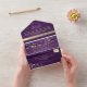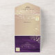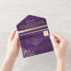 Set den Ton für eine romantische rustikale Hochzeit mit dieser eleganten All-in-One-Einladung aus tiefem lila Holz, verziert mit leuchtenden Lichtern der Saiten und goldenen Blumen-Linien-Kunst. Ideal für feierliche Hochzeiten im Stall, Winterfeiern oder Abend mit Blumenkohl.