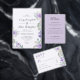 Erleben Sie Ihr Hochzeitsessen mit rustikaler Eleganz. Auf der einen Seite ist ein einfaches und zeitgenössisches Design mit Kalligraphie auf einem staubigen lila Hintergrund, auf der anderen Seite finden Sie ein Komplimentarismus von einzigartigen Aquarellfloralen und Blattwerk.