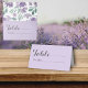 Rustikale Lila und blumengeschmückte Hochzeitssitz Platzkarte