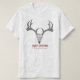 Der T - Shirt eines Bauernhauses zeigt eine handgezeichnet Abbildung eines Hirschkopfschädels und eines Rentierschädels in schwarzer Tinte. Alle Texte können bearbeitet werden. Personalisieren Sie Ihren Urlaub mit Ihrem eigenen Namen.