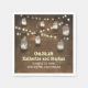 Herrliche Papierservietten mit rustikalem Stallholz und Maurerkirschen, die an den Saitenleuchten hängen.
