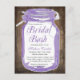 Rustikales Country Brautparty Postkarten mit einem alten Vintagen lila Lavendel-Design auf einem rustikal bedrückten braunen Hintergrund. Die Konservendose ist eine lila, Lavendel-, Grau- und Weißfarbe. Die "Brautparty"-Wörter sind in einem extravaganten Schriftsatz verfasst, der Teil des Hintergrunddesigns ist und nicht geändert werden kann. Kontaktieren Sie mich, wenn Sie eine andere Farbe benötigen. Fügen Sie einfach die Brautparty-Informationen zu dieser leicht zu verwendenden Vorlage hinzu. Fügen Sie dann Ihre Rücksendeadresse auf der Rückseite ein. Rett Geld auf der Bühne, indem man diese als Postkarten ausschickt: rustikales Brautparty Postkarten, Postkarten für das Brautparty, Postkarten für das Kaukasus-Brautparty, Brautparty im Landhausstil, Brautparty für Hochzeiten, Postkarten für das Dosenkarton, Postkarten für das Kaukasonkarton, bedrückte Postkarten, Grunge, antikes, altes, Vintages, Mason Jar-Brautparty-Postkarten, Brautparty-Postkarten, Brautparty Postkarten, Polterabend, lila alte Antike