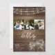 Set den Ton für Ihr Country-Fest mit diesen rustikalen Hochzeitsartikeln, die einen warmen Holzboden, leuchtende Saitenlichter und charmante Mauerkirschen bieten. Dieses rustikale Design ist perfekt für Stallhochzeiten, Feiern im Freien oder gemütliche Abend-Zeremonien geeignet und schafft eine einladende und romantische Atmosphäre. Passen Sie Ihre Namen, Ihre Hochzeitsdetails und Ihre Veranstaltungsinformationen an, um die perfekte Einladung / Schreibwaren zu gestalten, die Ihren rustikalen Stil widerspiegelt.