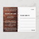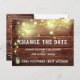 Hochzeitsaktualisierung: Manchmal gibt es vorübergehende Hindernisse im Leben und Sie müssen vielleicht ein großes Ereignis wie eine Hochzeit verschieben. Kein Problem; Liebe ist geduldig. Diese Postkarte mit dem Datum ändern lasse Freunden und Verwandten, sich über Ihre Planänderung im schönen Stil zu informieren. Neukalkulieren Sie Ihre Hochzeit und lassen Sie die Leute das neue Datum gerettet. Rustikales Land Hochzeit Holz Maurer Glas Reihe von Lichter Baum Zweig mit grünen Blätter Ändern Sie das Datum Postkarte. Die leuchtende Lichterkette beleuchtet die grünen Blätter mit einem schönen rustikalen dunkelbraunen Holz. Dieses rustikale Hochzeitsdesign ist für Ihre Hochzeit im Freien oder für Ihre Hochzeit im Western individuell gestaltet. Sie können sich anpassen, indem Sie den Text ändern und Bilder hinzufügen, wenn Sie möchten. Sie können auch einen anderen Papiertyp und eine andere Dicke wählen. Für die passenden Artikel lesen Sie bitte die Sammlung unten mit anderen Artikeln in der rustikalen Hochzeitssuite.