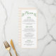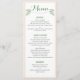 Diese rustikale Blumen- und Tischbesteck-Probenabendessen-Menükarte kennzeichnet eine sehr schwache rosa und grüne rustikale Blumenanordnung und ein graues/silbernes Tischbesteck auf einem weißen Hintergrund mit einer ecru (sehr helles Kitz) Grenze. Es ist bereit, personalisiert zu sein und ist für ein Paar passend, das eine rustikale Hochzeit hat.