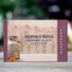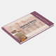 Personalisiertes Gästebuch mit einem rustikalen Landmotiv. Eine alte rostende Milch kann mit einer hübschen orangefarbenen Blume an der Seite. Weiße und verblasste rote Pupien im Hintergrund Set vor einem schwachen Holzpaneel. Personalisieren Sie mit den Namen des Ehepaares und dem Hochzeitsdatum.