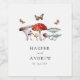 Rustikales Hochzeitsweinetikett mit Aquarellbildern von Pilzen und Motten.