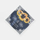 Dekorieren Sie Ihre marineblaue, rustikale Hochzeitsfeier, die von Sonnenblumen inspiriert wird. Die eleganten, blumengeschmückten Servietten aus Hochzeitspapier mit Sonnenblumen auf einem Holzboden und Spitzen-Hintergrund. Matching-Elemente verfügbar.