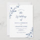 Diese reizende rustikale Hochzeitseinladung besticht durch einen klassischen, weißen Hintergrund mit handgezeichnet marineblau-blauen Wildblumen und eleganter Typografie. Es ist das perfekte Design für eine rustikale, aber elegante Hochzeit! Informationen zur Koordination von Elementen finden Sie in der Auflistung.
