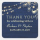 Elegante quadratische Hochzeit danken Ihnen Aufkleber mit warmen Saitenlichtern, rustikalem marineblau-blauem Holzhintergrund und zarten goldenen Blumenakzenten. Personalisiert mit den Namen und dem Hochzeitsdatum des Paares, ist es perfekt, um Kuverts, Gefallen und Dankesgeschenke aus Ihrer Feier zu schließen.