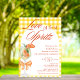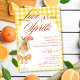Rustikale Elegant Niedlich Chic Liebe bei der ersten Spritz Bridal Dusche Einladung - Mit einem Aquarell Aperol Spritz mit einem Orangenschnitt, mit einem Orangenbogen verziert. Die Einladung hat einen rustikalen, gingham karierten gelben Hintergrund und einen weißen Bogen Rahmen. Die Worte "Liebe am ersten Spritz" sind in einer Mischung aus raffinierter Skriptkalligraphie und elegantem Block dunkelverbrannten orangefarbenen Text geschrieben. Editieren Sie diese Brautduscheinladung mit Ihren eigenen Veranstaltungsdetails. Auch als sofortiger digitaler Download erhältlich, einfach per Text, E-Mail oder Social Media zu versenden.