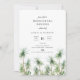 Rustikale Aquarellpalmen, Hochzeit Probe Dinner Einladung. Die Karte verfügt über eine moderne Typografie-Designvorlage und koordiniert dabei die schlanke grüne Farbabdeckung.