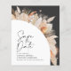 preisgünstige moderne Scheune Bauernhof rustikale botanische bohemian natürlichen Terracotta Pampas Gras stilvolle Hochzeit speichern das Datum Einladung. launischer schwarzer Hintergrund