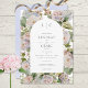 Dieses schlichte, aber elegante Hochzeitsdesign besticht durch eine wunderschöne Hydrangea-Blumenkulisse aus staubigen rosa, sanften periwinkle Blues und grünen Purpur. Der Text wird auf einem weißen Gewölbehintergrund angezeigt, und das Design wird mit dem ersten Anfang der Braut und Bräutigam abgeschlossen. Dieses Design ist Teil der Rustic Pastel Hydrangea Floral Monogram Hochzeitssuite von Karten. Erstellt von der einfachen Farmhouse Press.