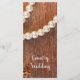 Geben Sie Ihren Gästen die Reihenfolge Ihrer Hochzeiten mit dem informellen und eleganten Programm für rustikale Perlen und Barnholz Country Wedding. Dieses Western Ranch Eheprogramm zeigt ein malerisches Foto einer Perlenhalskette und braunes, verwittertes Stallholz.