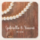 Personalisieren Sie die bezaubernden Rustikalen Perlen und Barnholz Land Hochzeitspapier Untersetzer mit den Namen der Braut und Bräutigam und Heirat Zeremonie Datum für den Einsatz in Ihrem lässigen und dennoch klassischen Verlobung Scheune Party, Brautparty oder Ehe Empfang. Diese informellen und eleganten Western Ranch-Thema Einweg-Untersetzer verfügen über ein malerisches Foto einer weißen Perlenhalskette mit braunem Holzhintergrund.