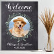 Willkommen ~ zu meinen Eltern Hochzeiten! Bringen Sie Ihren besten Hund, die beste Katze und jedes Haustier in Ihre Hochzeit mit einem eigenen Begrüßungsschild für Ihre Gäste. Ideal für Hundeliebhaber, macht das perfekte Zeichen für Hochzeitshunde. Einfache und elegante rustikale Tonschiefer mit Eukalyptus-Blätter. Passen Sie dieses Lieblingstitel mit Ihrem Hund, Ihrer Katze, Welpe oder einem Kätzchen Lieblingsstift, Namen und Datum an! COPYRIGHT © 2020 Judy Burrows, Black Dog Art - Alle Rechte vorbehalten. Rustikale Pet Hochzeit Personalisierter Hund Foto Poster