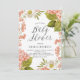 Mit dieser individuellen Blumeneinladung laden Familie und Freunde zu Ihrer Baby-Dusche ein. Eine elegante Babydusche mit Aquarellbildern aus Pfirsichhydrangeas, weißen Blume und Grünpflanzen mit elegantem Drehbuch. Diese botanischen Farben sind perfekt für geschlechtsneutrale Babyduschen.