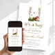 Feiern Sie einen Neuanfang mit dieser bearbeitbaren Wald-Baby-Party-Einladung. Diese Einladung ist so gestaltet, dass sie den Ton für ein freudiges Treffen vorgibt, und hilft Ihnen, den Moment hervorzuheben und ihn Ihren Lieben auf eine ganz besondere Weise zu vermitteln.