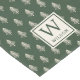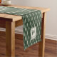 Individuell gestalteter Tischläufer für die Urlaubssaison mit rustikalen handgezeichneten Waldgrün- und beigefarbenen Pinienbäumen mit personalisiertem Familiennamen Monogramm.