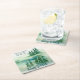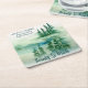 Rustikaler Grünwald Pine Trees Square Paper Untersetzer. Personalisieren Sie mit Ihren individuellen Namen und Hochzeitsdetails.